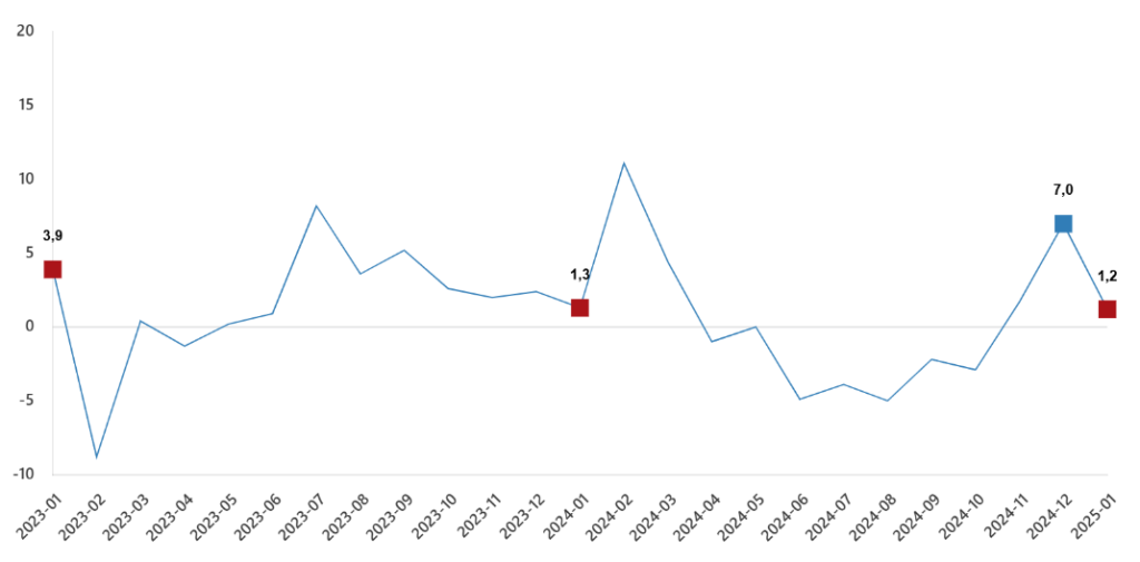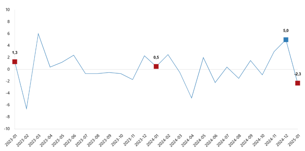 Sanayi üretim endeksi aylık değişimleri(%), Ocak 2025
