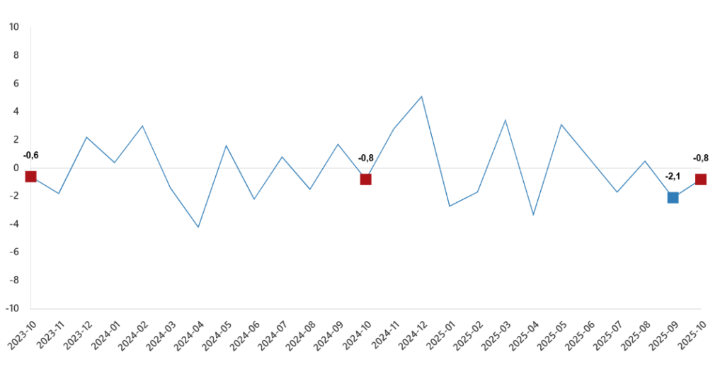 Sanayi üretim endeksi aylık değişimleri(%), Ekim 2025