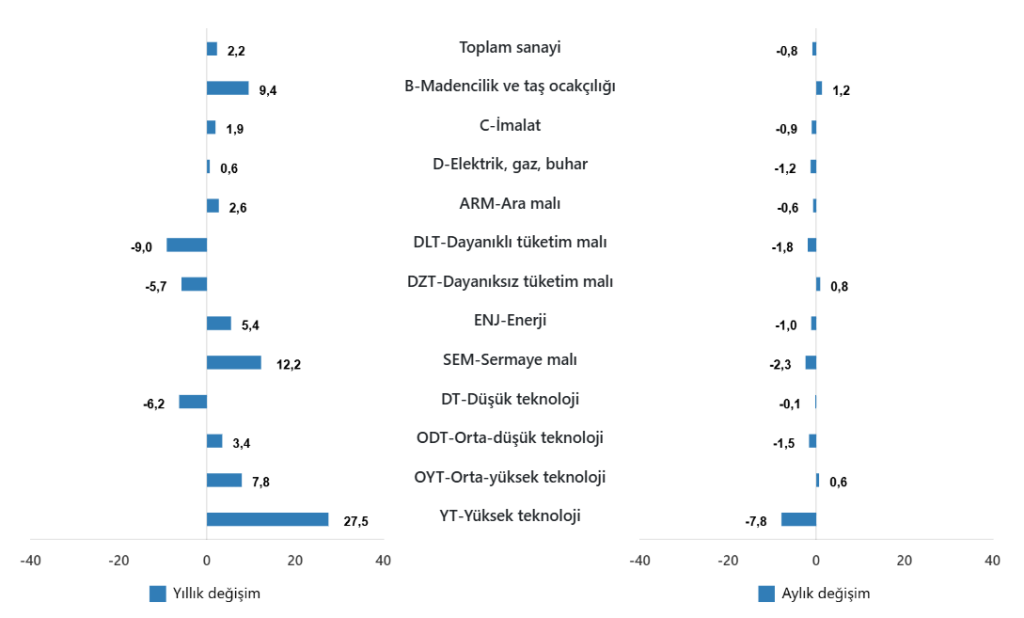 Sanayi üretimi yıllık yüzde 2.2 arttı..