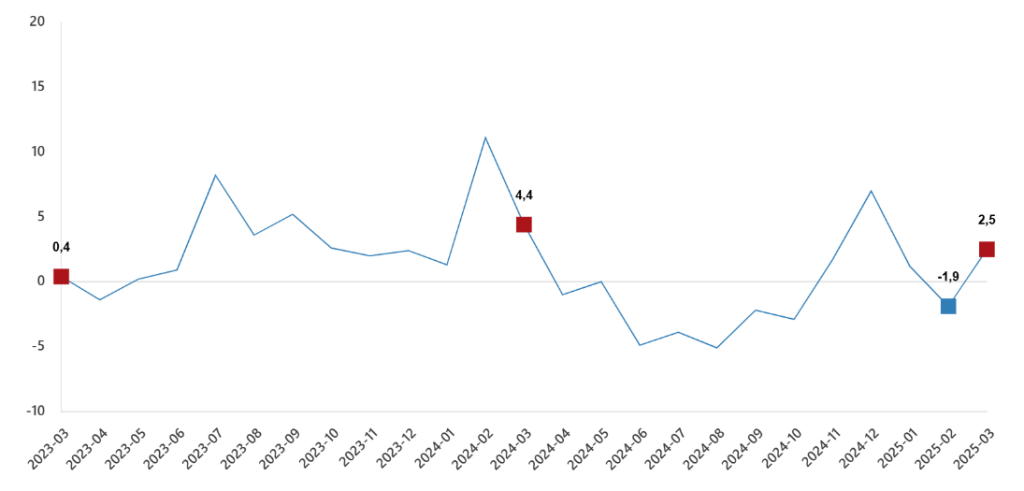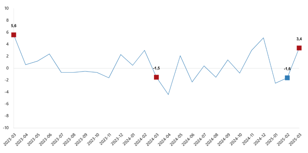 Sanayi üretim endeksi aylık değişimleri(%), Mart 2025