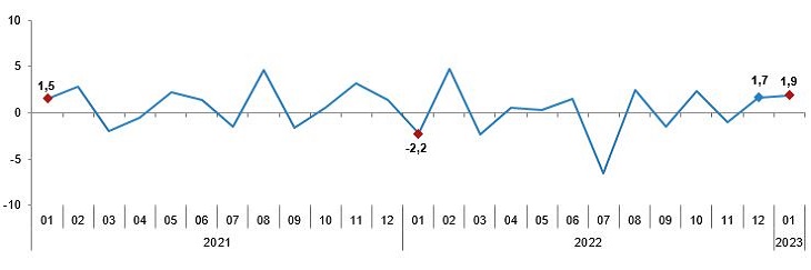 Sanayi üretim endeksi aylık değişim oranları (%), Ocak 2023
