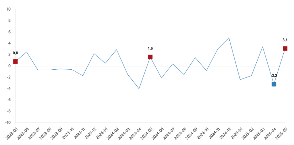 Sanayi üretim endeksi aylık değişimleri(%), Mayıs 2025