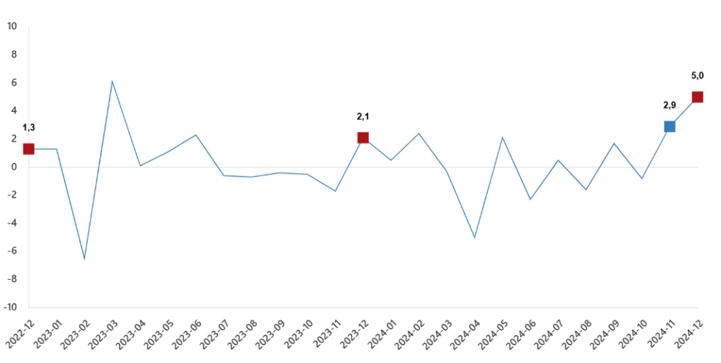 Sanayi üretim endeksi aylık değişim oranı(%), Aralık 2024