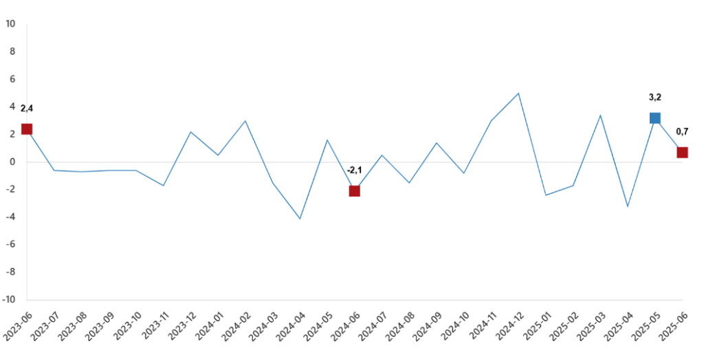 Sanayi üretim endeksi aylık değişimleri(%), Haziran 2025