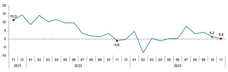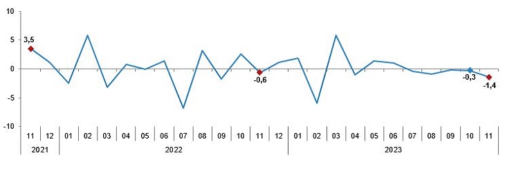 Sanayi üretim endeksi aylık değişim oranları (%), Kasım 2023