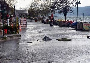 Kartepe’de zaman zaman 3 metreye ulaşan karların erimeye devam etmesiyle bugün su kodu 32.20 olan Sapanca Gölü’nde bu yükseliş, ilçe merkezinde sahil şeridindeki yolları ve işletmeleri su altında bıraktı. Sapanca’ya gelen günü birlik tatilciler sahil bandında gezerken çıkan rüzgarın etkisiyle dalgalar yolu ve buradaki büjiteri ve gıda malzemeleri satan işyerlerini su altında bıraktı. Göl kenarında bulunanların oturduğu banklar, işletmelerin masa-sandalyeleri ile seyyar tezgahlar su altında kaldı.