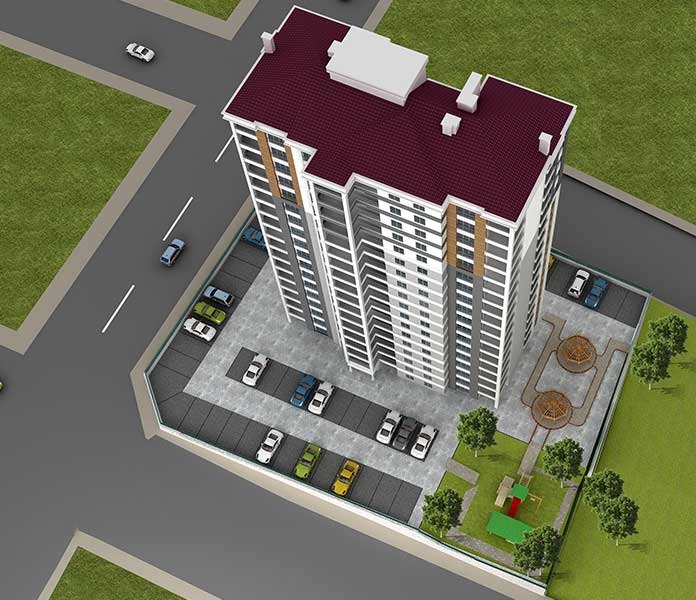 • Her daire için bir araçlık açık otopark, misafir araçları için otopark