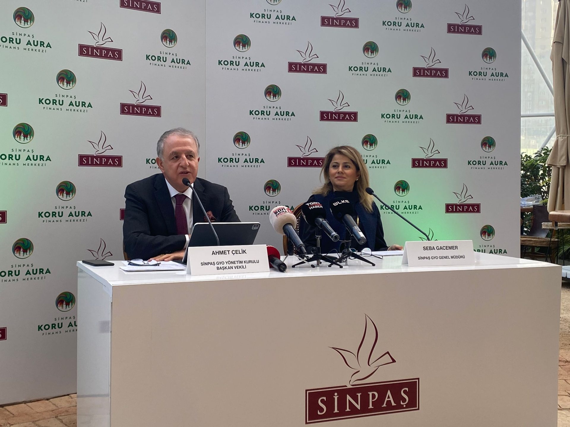 Sinpaş GYO’nun İstanbul Finans Şehir’deki yeni projesi Koru Aura, Sinpaş GYO Yönetim Kurulu Başkan Vekili Ahmet Çelik ve Sinpaş GYO Genel Müdürü Seba Gacemer ev sahipliğinde düzenlenen bir basın toplantısıyla sektör temsilcilerine ve yatırımcılara tanıtıldı.