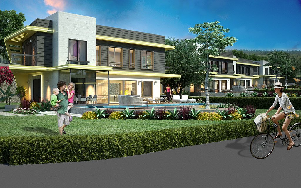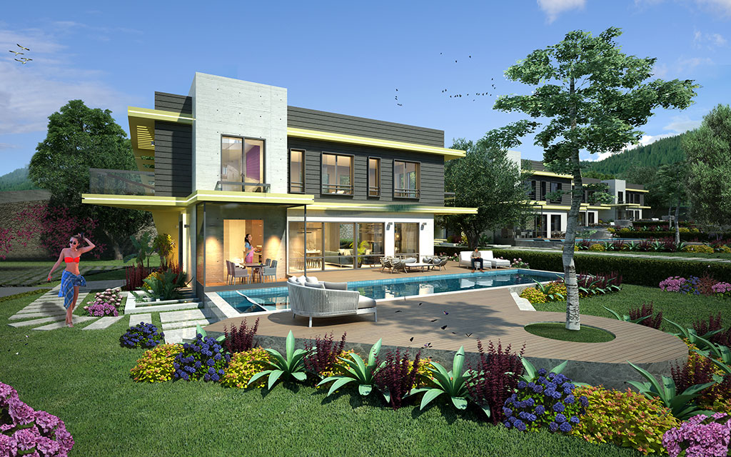 - Her villanın bahçesinde 60 metrekarelik yüzme havuzu bulunuyor
