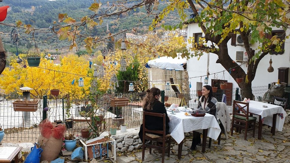 İzmir’in Selçuk ilçesine bağlı olan Şirince Köyü’ndeki pansiyona dönüştürülen tarihi evler salgın tedbirleri kapsamında sokağa çıkma kısıtlamasının olduğu dönemlerde de konuklarını ağırlamaya devam ediyor.