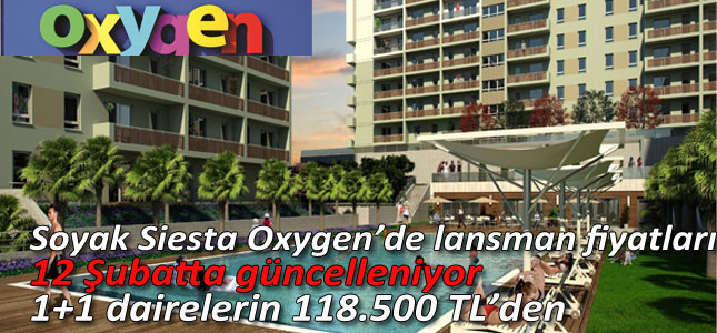 Geçtiğimiz aralık ayında lansmanı yapılan Soyak Siesta Oxygen’de 1+1 dairelerin ilk günkü fiyatlarıyla satışları devam ediyor. 118.500 TL’ olan 1+1 daireler için son gün 12 Şubat.