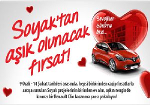 Soyak 9 Ocak -14 Şubat tarihleri arasında Soyak Mavişehir Optimus, Soyak Siesta, Soyak Evostar ve Soyak Park Aparts projelerinden konut alanlara Sevgililer Günü'ne özel kırmızı bir Renault Clio kazanma şansı sunuyor.