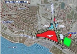Kartal Sahil yolunda Dap Yapı ve Ağaoğlu'nun Emlak Konut'tan 1,3 milyar lira rekor fiyatla aldığı 64 bin 500 metrekare büyüklüğündeki Kartal arazisine ve hemen yanında bulunan Eczacıbaşın'ın 400 dönüm büyüklüğündeki arazisine komşu .