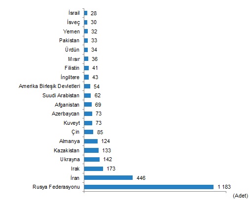 Şubat ayında, Rusya Federasyonu vatandaşları Türkiye’den 1.183 konut satın aldı. Rusya Federasyonu vatandaşlarını sırasıyla 446 konut ile İran, 173 konut ile Irak vatandaşları izledi.