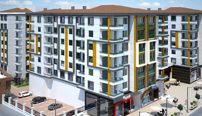 Örnek dairesi de olan projede; tamamı 4+1 kat planında ve brüt 198 metrekare büyüklüğünde 80 konut ve 6 ticari ünite bulunuyor.