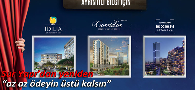 Sur Yapı’nın geçtiğimiz yıl uzun bir süre devam ettirdiği ve büyük ses getiren “az az ödeyin üstü kalsın” kampanyası yeniden başlıyor. Sur Yapı’nın Corridor, Exen İstanbul ve İdilia projelerinde geçerli olan kampanya kapsamında cazip ödeme seçenekleri yer alıyor.