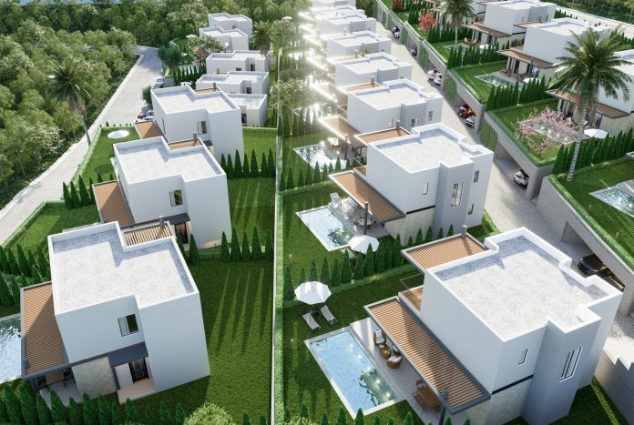 - Villalar 350-500 metrekare arasında değişen büyüklükte bahçelere sahip