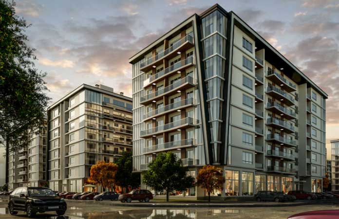 Örnek dairenin de olduğu projede tamamı 125 metrekare 3+1 kat planında 430 konut ve 12 ticari mağaza inşa ediliyor.