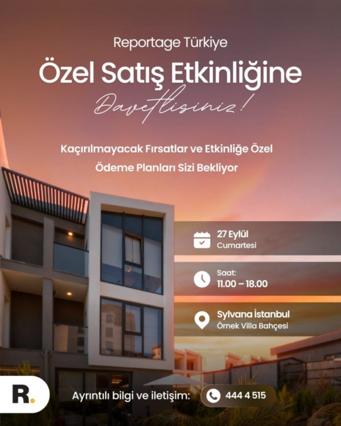 Reportage Türkiye’nin Bahçeşehir’de geliştirdiği Sylvana İstanbul projesinde satışta olan son villalar için avantajlı koşulların sunulacağı sonbahara özel davet ve satış etkinliği örnek villanın bahçesinde düzenlenecek. Hem oturum hem de yatırım amacıyla villa sahibi olmak isteyen katılımcılar satış etkinliğinde bir araya gelecek.