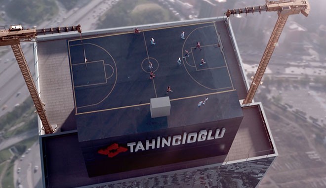 Tahincioğlu'nun Ataşehir'deki sembol yapılarından Palladium Tower'da çekilen reklam filminde 43. katta kurulan sahada Tahincioğlu Basketbol Süper Ligi’nde mücadele eden 16 farklı takımdan 1'er oyuncu bir araya geldi.