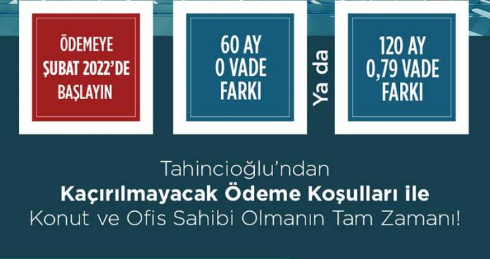 Tahincioğlu’nun Nidapark İstinye, Nidapark Küçükyalı Büyükada Multievler ve Nidakule Küçükyalı Ofislerden şimdi alım yapan yatırımcılara vade farksız 60 ay veya 120 ay 0.79 vade farkı ile ödeme fırsatı sunuluyor. Üstelik ödemeler de Şubat 2022’de başlıyor.
