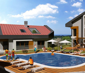 A Tipi İkiz Villalar; kendine ait otoparklı, 315 m2 brüt alanlı tripleks ikiz villalardan oluşuyor.