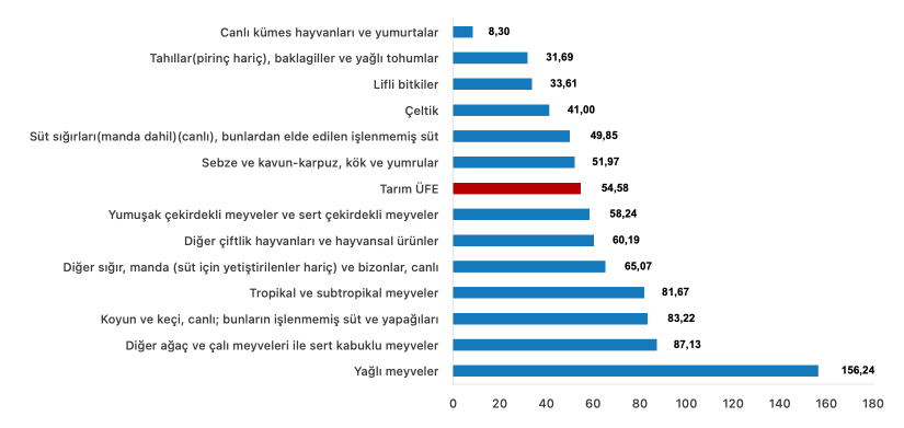 | Tarım-ÜFE | 667,99 | 1,95 | 21,91 | 54,58 | 61,49 |
