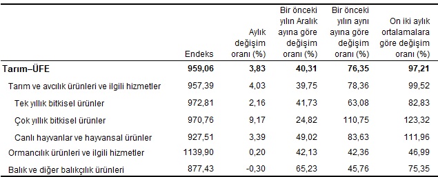 Yıllık Tarım-ÜFE’ye göre 6 alt grup daha düşük, 7 alt grup daha yüksek değişim gösterdi