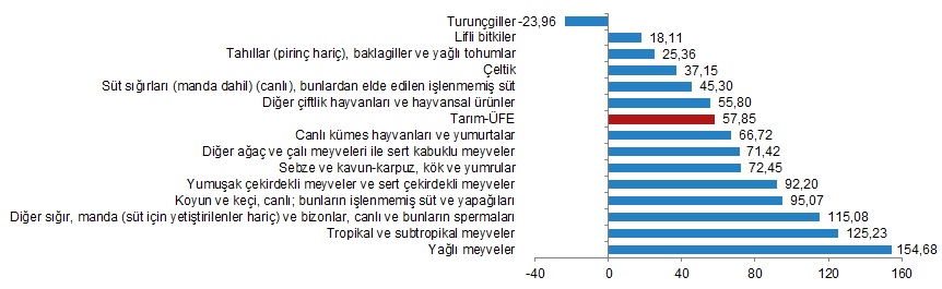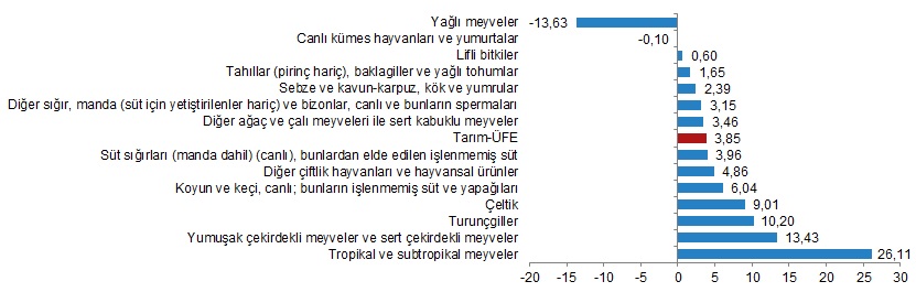 Yıllık Tarım-ÜFE’ye göre 6 alt grup daha düşük, 8 alt grup daha yüksek değişim gösterdi