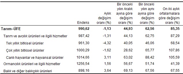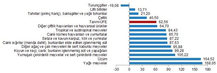 Tarım Ürünleri Üretici Fiyat Endeksi yüzde 62.56 arttı..