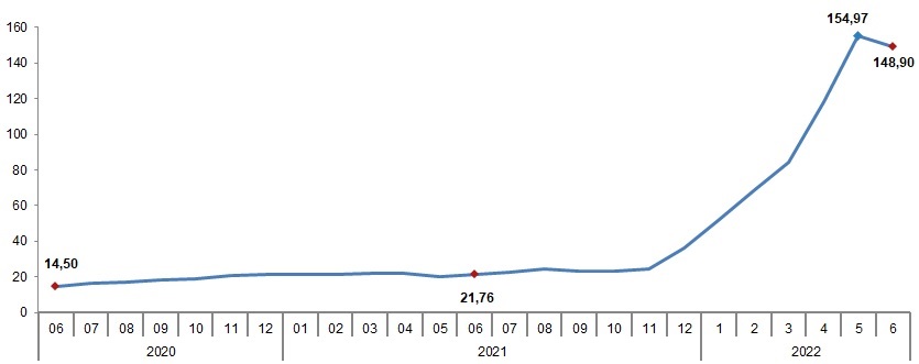 Tarım-ÜFE yıllık değişim oranı (%), Haziran 2022