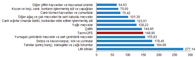 Yıllık Tarım-ÜFE’ye göre 7 alt grup daha düşük, 4 alt grup daha yüksek değişim gösterdi