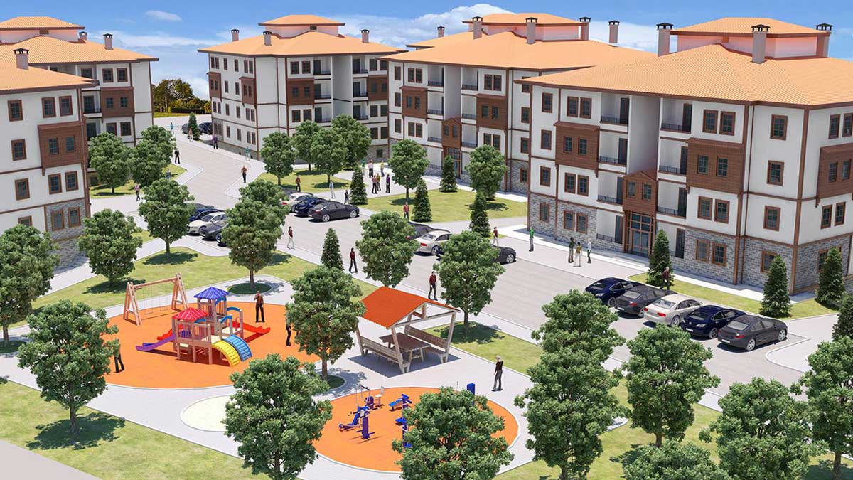 Zemin+3 katlı bloklar halinde tasarlanan projedeki dairelerin 78’i 2+1, 29’u 3+1 kat planlarında inşa ediliyor.