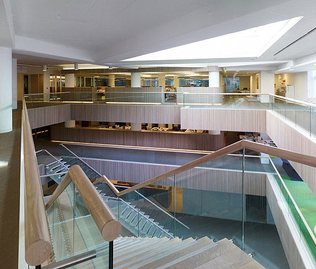 Dolaşım alanlarının sanat objeleriyle zenginleştirilerek bir galeri gibi algılanması düşünüldü, bu nedenle proje geneline açık renkler ve açık meşe ahşap kaplama kullanıldı. Bu alanların etrafında şirketin farklı bölümleri konumlanarak çakışanların yaratılan ortamı gün boyunca yaşayabilmeleri amaçlandı.