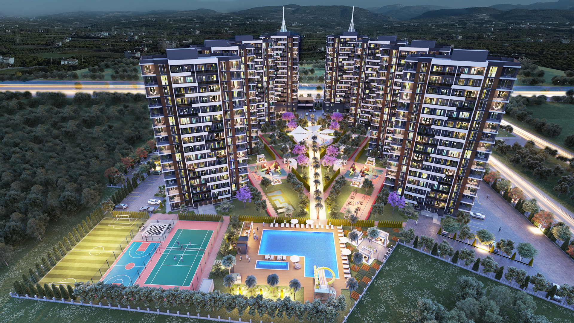 - Peyzajlı yeşil alanlar, yürüyüş yolları, dinlenme ve barbekü alanları