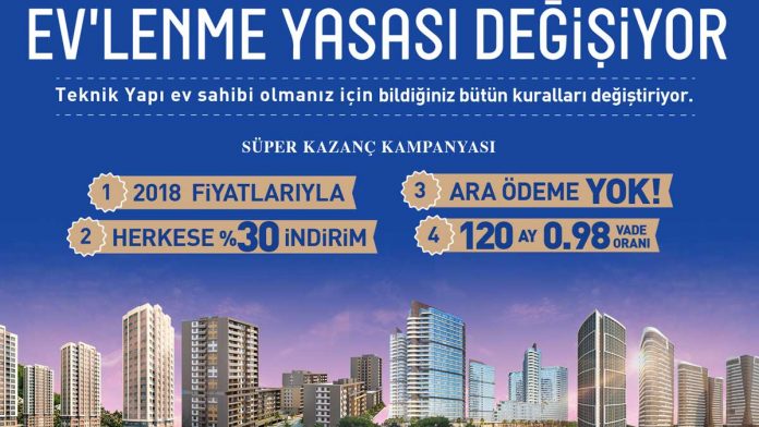 Türkiye’de gayrimenkul sektörünün güçlü, güvenilir ve lider firmalarından Teknik Yapı, devam eden 5 projesinde devam eden “Süper Kazanç Kampanyası” ile birlikte ev sahibi olmak için bilinen bütün kuralları ve deyim yerindeyse Ev’lenme Yasasını değiştiriyor.