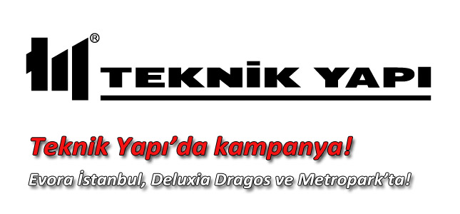Teknik Yapı, bütçeleri rahatlatan ödeme planı ve şartları yeni yıla yeni bir ev ile girmeyi kolaylaştırıyor. Evora İstanbul’dan daire almak isteyenler; Peşinatı daire teslimine ve kredi Taksitlerini ise bir yıl sonraya öteleyebilecek. Vade avantajı dışında fiyat fırsatı arayanlara ise yüzde 10 indirim olanağı sunulacak. Kampanya kapsamında Teknik Yapı Metropark’tan daire almak isteyenlere ise kredi taksitlerine bir yıl öteleme veya yüzde 10 indirim sağlanacak. Deluxia Dragos projesinde ise yüzde 10 indirim seçeneği olacak.