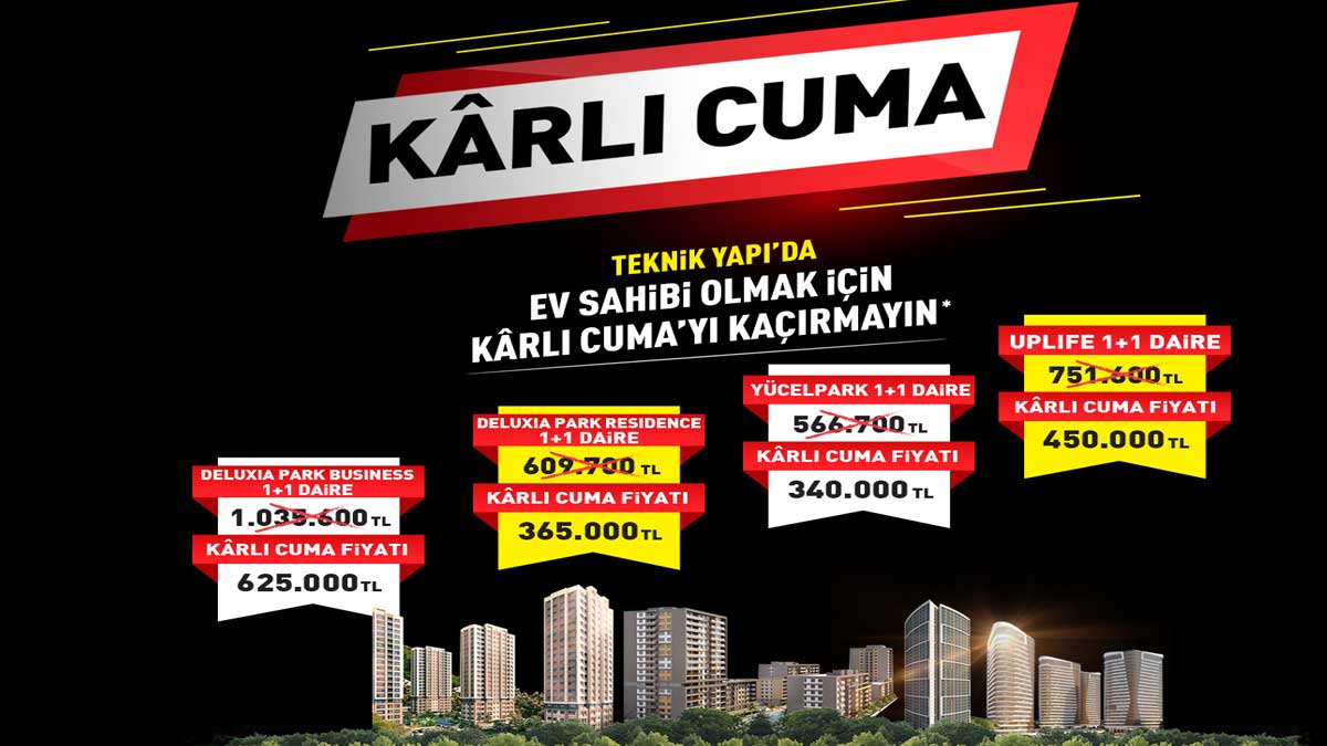 Teknik Yapı’nın yapımı devam eden dört projesinde “Kârlı Cuma” kampanyası kapsamında konut alıcılarına çok cazip fiyatlarla ev sahibi olma fırsatları sunuluyor.