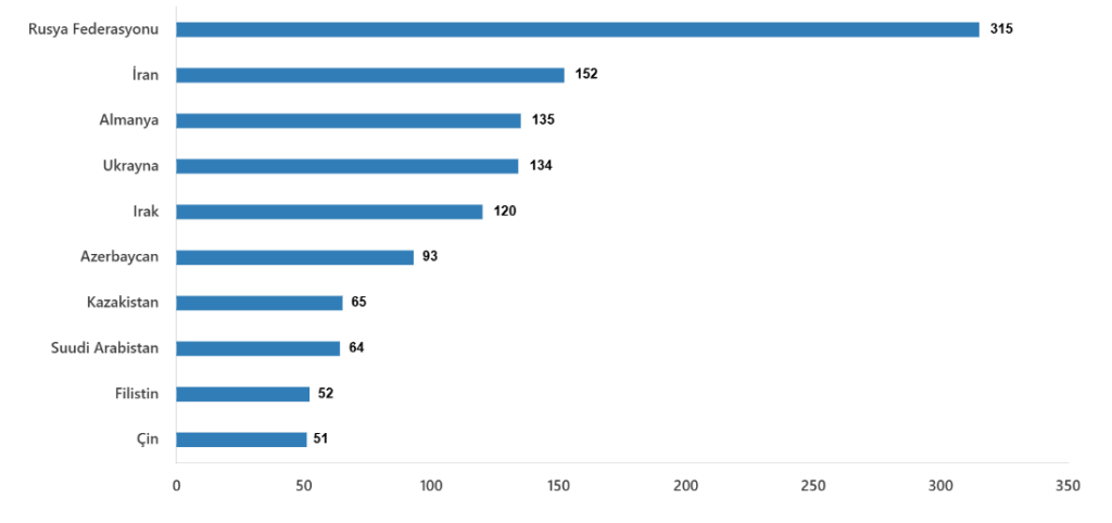 Temmuz ayında ülke uyruklarına göre en fazla konut satışı sırasıyla 315 ile Rusya Federasyonu, 152 ile İran ve 135 ile Almanya vatandaşlarına yapıldı.
