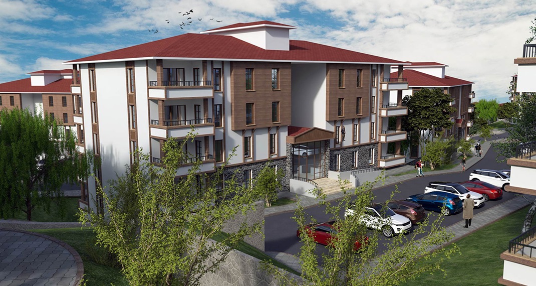 Yükseklikleri zemin+2 ve 3 olan konutların 184’ü 2+1 ve 138’i ise 3+1 planında yapılacak.