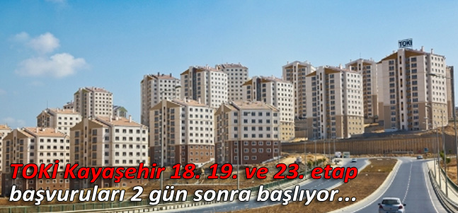 TOKİ Kayaşehir 18. bölge, 19. bölge ve 23. bölgede başvurular 23 Mart 2015 Pazartesi başlıyor. Başvuru için son gün ise 30 Nisan 2015 Perşembe olarak belirlendi.