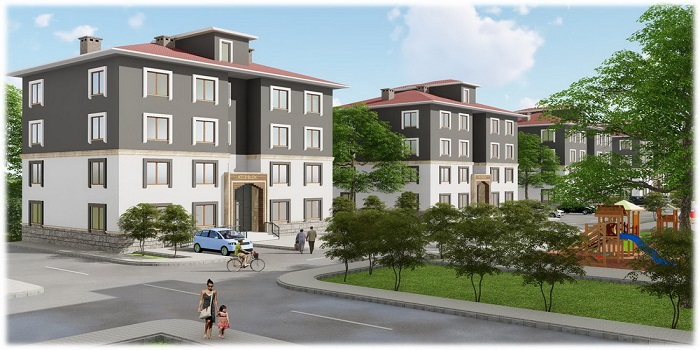 Projedeki yükseklikleri zemin+3 olan konutların 341’i 2+1, 160’ı 3+1 ve 108’i ise 4+1 planında yapılacak.