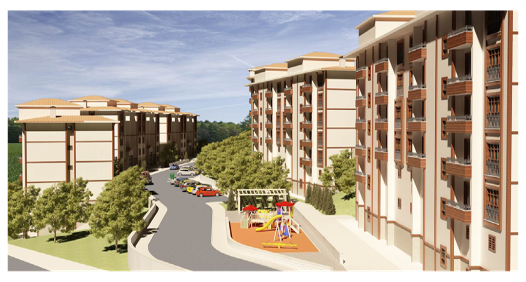 Söz konusu proje kapsamında ihale yapıldı. İhale kapsamında 161 konutun yanı sıra altyapı ve çevre düzenlemesi de hayata geçirilecek.