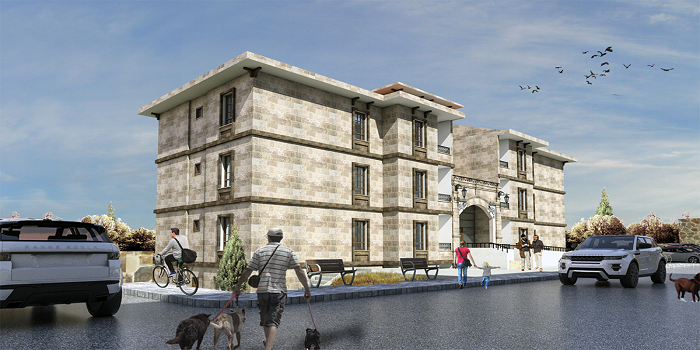 Avanos evleri projesindeki konutlarda geleneksel mimari ile modern mimarinin harmanladığı bir anlayışla inşa yapıldı. Bina cephelerinde bölgede bulunan “volkanik doğal tüf taş”, taş söve ve kat silmeleri, dekoratif pencereler ile kemer formlu blok girişleri kullanıldı.