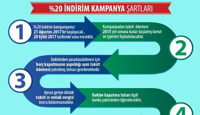 Toki’nin 2017 indirim kampanyası bugün başlıyor. 21 Ağustos-29 Eylül tarihleri arasında geçerli olan kampanya kapsamında borcunu ödeyip tapusunu hemen almak isteyen konut ve işyeri alıcılarına yüzde 20 indirim yapılacak.