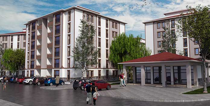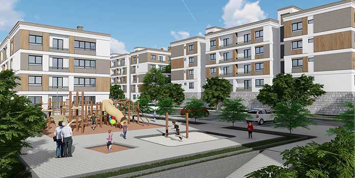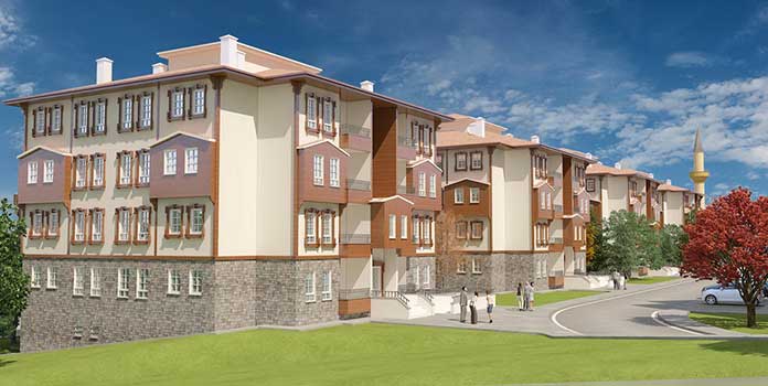Adana’nın Tufanbeyli ilçesinde yaptırılacak olan 14’ü 1+1, 76’sı 2+1, 64’ü de 3+1 kat planında olmak üzere 154 konutluk projenin inşaat yapım ihalesi 7 mayıs pazartesi günü yapıldı. Zemin+3 katlı bloklar halinde tasarlanan projenin ihale kapsamında konutların yanı sıra 1 ticari ünite, 1 cami ile çevre düzenlemesi ve alt yapı çalışmaları da bulunuyor. Ahşap görünüm veren kaplamaların kullanılacağı projede söveler ve geniş pencereler kullanılacak.