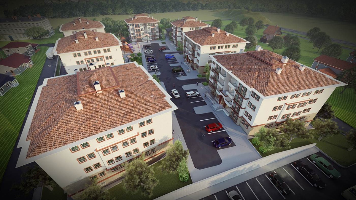 Modern ve geleneksel mimari unsurlarının sentezleneceği projede zemin kat seviyesinde dış kaplamalarda yöresel taşlar kullanılırken dış cephelerde ahşap görünümlü kaplamalar, kat silmeleri, söveler, dekoratif pencereler kullanılacak. Yatay mimaride hayata geçirilecek proje ile birlikte bölgede yeni bir yaşam alanı oluşturulacak.