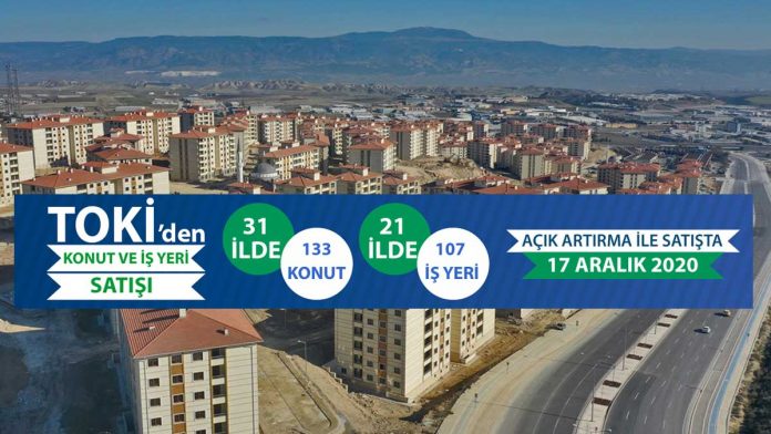 Toplu Konut İdaresi (TOKİ) 21 ildeki 107 iş yeri ile 31 ildeki 133 konutu 17 aralık perşembe günü açık artırma ile satışa sunuyor.