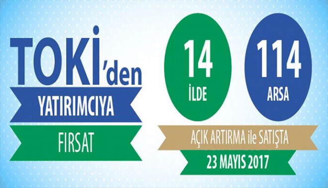 Adana, Ankara, Diyarbakır, Elazığ, Gaziantep, Giresun, İstanbul, İzmir, Karabük, Samsun, Siirt, Tekirdağ, Trabzon ve Van’da toplam büyüklüğü 411 bin 151 metrekare büyüklüğündeki 114 arsa; 23 mayıs günü düzenlenecek müzayede ile satışa çıkarılıyor. TÜRYAP tarafından gerçekleştirilecek açık artırma ile TOKi'nin mülkiyetindeki 407 milyon muhammen bedele sahip arsalar içinde; konut, ticaret, özel sağlık, özel kreş-anaokulu, özel eğitim, özel ilköğretim, özel ortaöğretim, bakım ve akaryakıt istasyonu, kentsel servis, konut dışı kentsel çalışma alanlarına haiz gayrimenkuller bulunuyor.