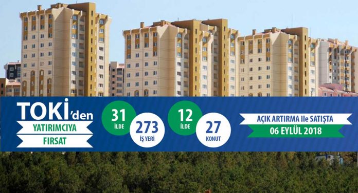 Toplu Konut İdaresi (TOKİ); 31 ayrı şehirdeki toplam 273 iş yeri ile 12 ayrı vilayetteki toplam 27 konutunu açık artırma yöntemiyle satışa sundu.